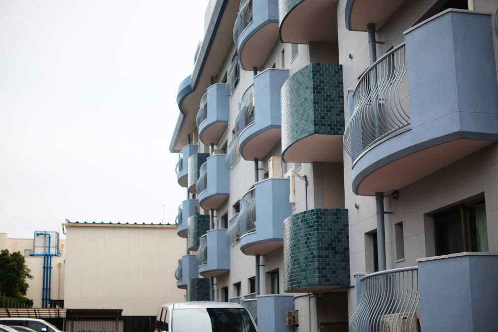 こないだも西新に歩いて行ってたらもうパット見で古そうなマンションを発見。この薄いブルーのカラーがたまんないですね。正確な場所としては城西になります。