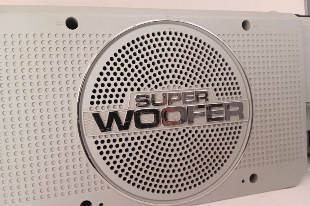 背面に「SUPER WOOFER」の文字。サイドのデザインといい、ここの文字といい、ちょっとトゥーマッチ感があり、それが味わい深いです。「HITACHI(日立)CD ロードジム CX-CD9」とかにもSUPER WOOFERの文字入ってるのでその辺にも似てますね。