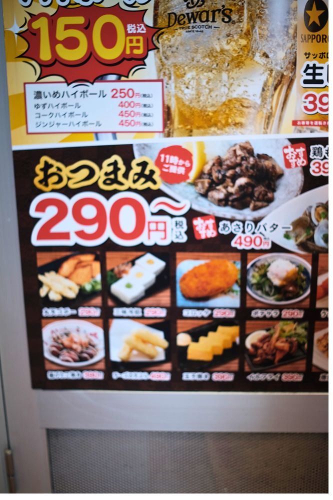 2軒目に行くのもいいし、「1人で軽く飲んで帰りたいけど居酒屋行くのもなー」って時にもめちゃめちゃと思います。ハイボール2〜3杯飲んでも500円しないのはやばすぎますね。
