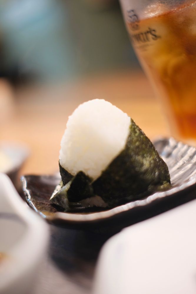 おにぎり1個から頼めるので、から揚げと磯辺揚げおかずに食べます。