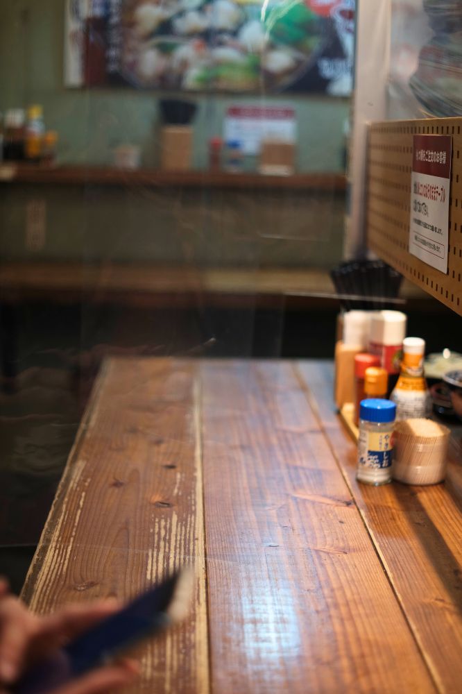 入り口近くのカウンターに座ります。