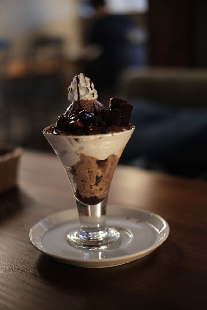 パフェ!いやー、パフェ食べるのほんと久しぶり。頭悪い感想ですが、生クリームがとにかくおいしいですね〜。あと、ブラウニー的なのが入っててそれもとてもおいしかったです。