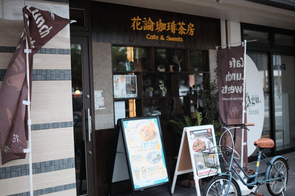 こちら「花論珈琲」さんです。別府駅1番出口から信号渡ってすぐの場所。少し前までネイルサロン的なのがあったんですが、いかにもすぐ無くなりそうだな〜と思ってたらやっぱりすぐ無くなりました。笑 その跡地にできたカフェ(喫茶店?)です。