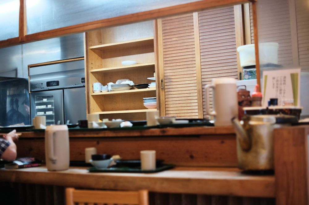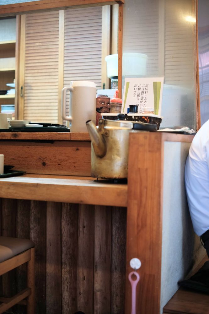 カウンターに置かれた巨大なやかんが懐かしさを感じる。高校のサッカー部でああいうの使ってた気がする。なんてことないけど、こういうところにグッとくるし、老舗のお店の好きなところです。