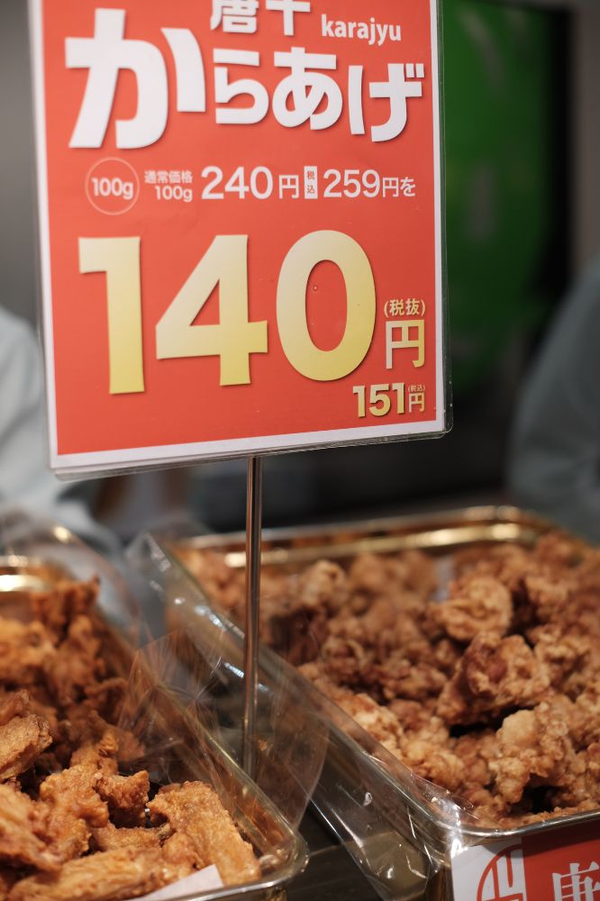 からあげ100g240円が140円になってた~。アツい。ホークス日本一セール的なやつなのか、毎週特定の曜日はセールしてるのか分からないけどラッキー。