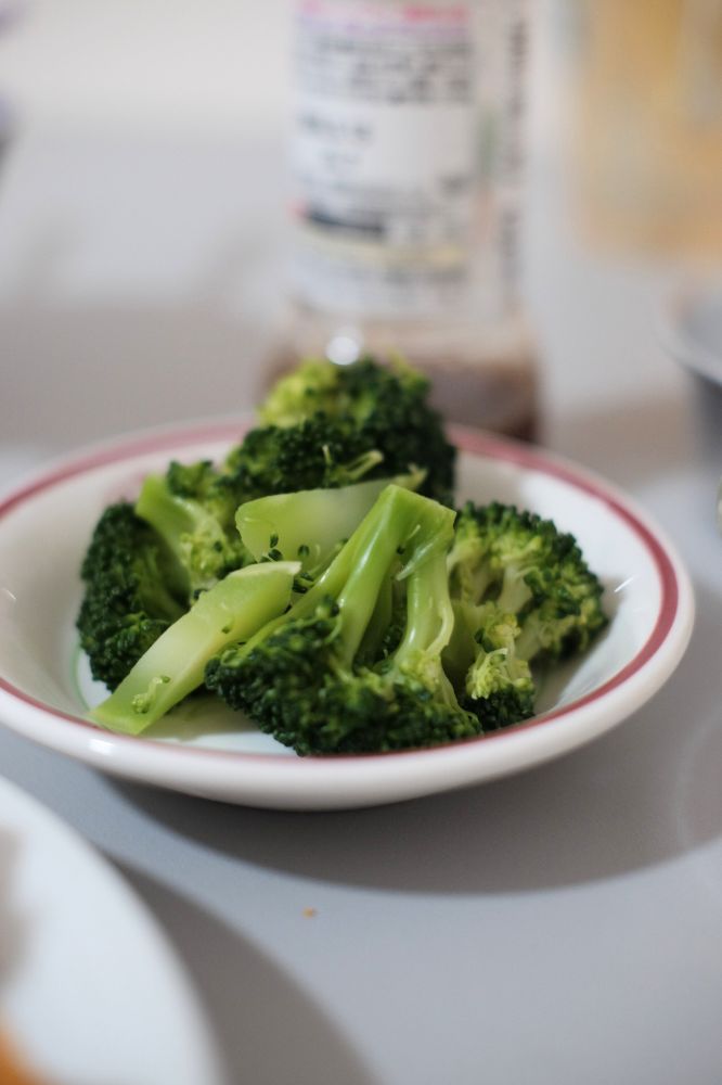 揚げ物だけじゃあれってことでブロッコリーも。自分で湯がいたやつ。湯がきすぎたせいでボロボロに崩れてしまった。。