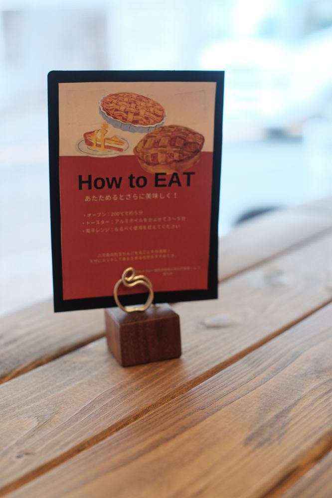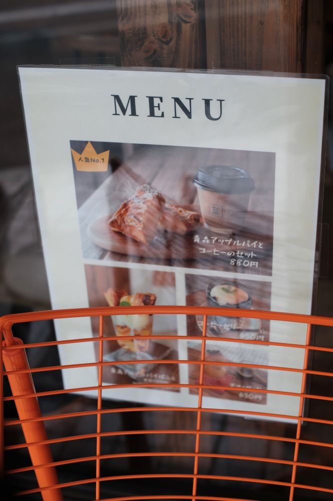外でメニューをチェック。2人ともアップルパイとドリンクのセットにしました。アップルパイパフェもおいしそうだったが、まずは王道のアップルパイから。ここでアップルパイパフェ食べるのは初めてのうどん屋さんで肉うどん食べずにしいたけうどん食べるようなもんです。