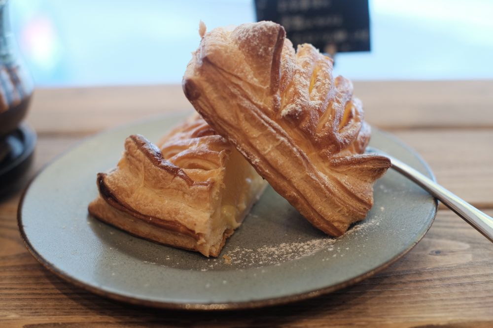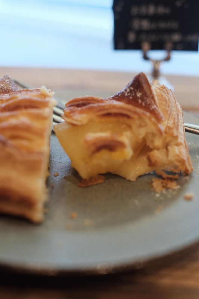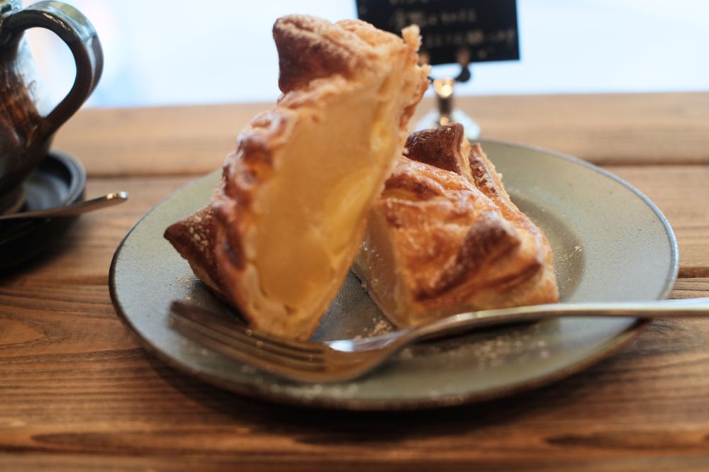 そしてメインのアップルパイ。アップルにいく前に、まずサクサクの生地がめちゃくちゃおいしい!パイ生地っていうんでしょうか?クロワッサン的な食感のやつ、たまんないです。