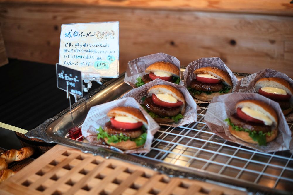 城西バーガーも見た目おいしそう過ぎて買ってしまった。たっぷりマヨネーズと甘いてりやきのパティがイケてます。これは人気あるはずですね、おいしい。