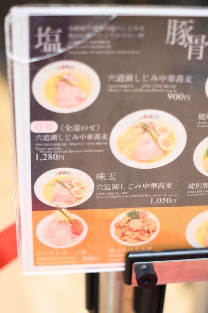 正確には、宍道湖しじみ中華蕎麦 琥珀。宍道湖、なんて読むんだ。あなどうこ?とにかくしじみが取れる場所と理解しました。