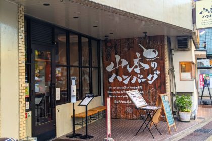 前にお店見つけたときにも見てましたが、外のメニューで食べたいもの考えます。自分はハンバーグ&エビクリームコロッケ、妻はステーキ&エビフライセットにしようかなと。