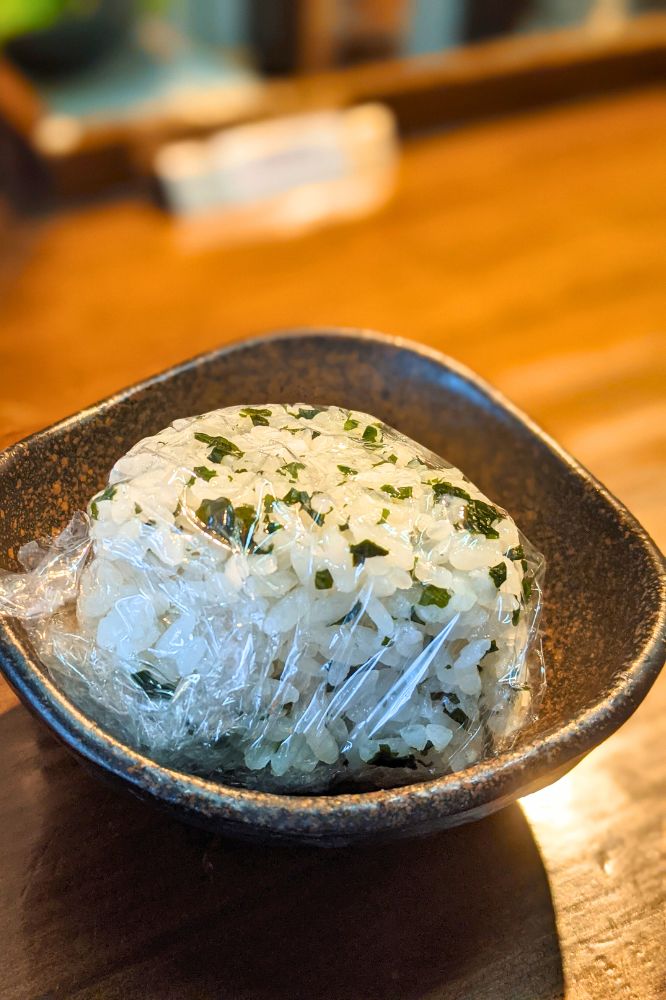 日替わりおにぎりも注文してました。今日はワカメです。塩味が効いてておいしい。