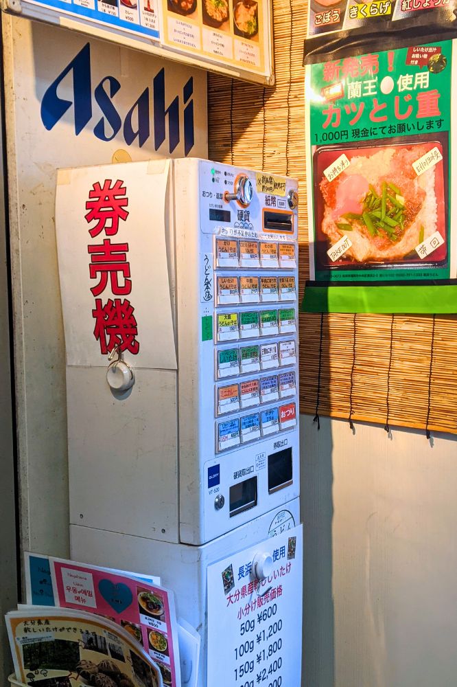 まず券売機で食券を買います。一応そばにも変更できるみたいだけど、ここはストレートにうどんでいこう。