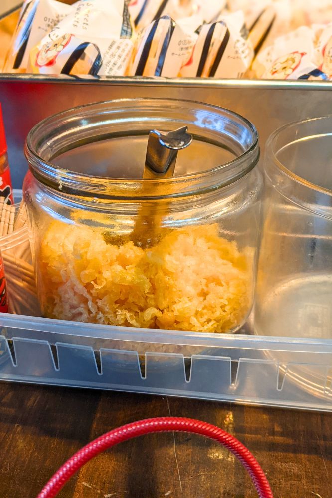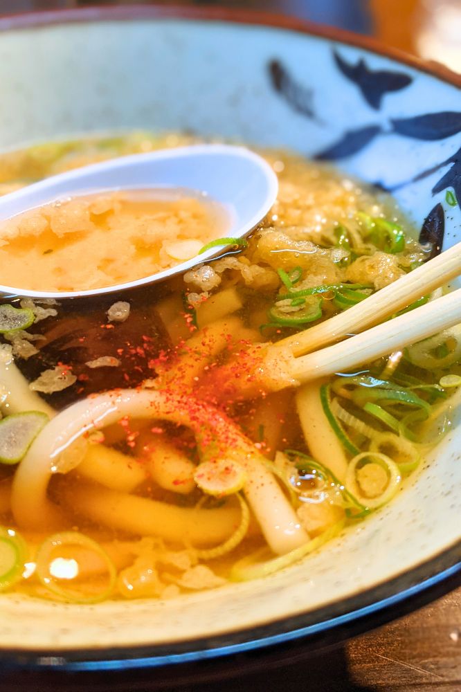 天かすはあとから入れたい派。ひとしきり食べたので軽く入れて食べよう。