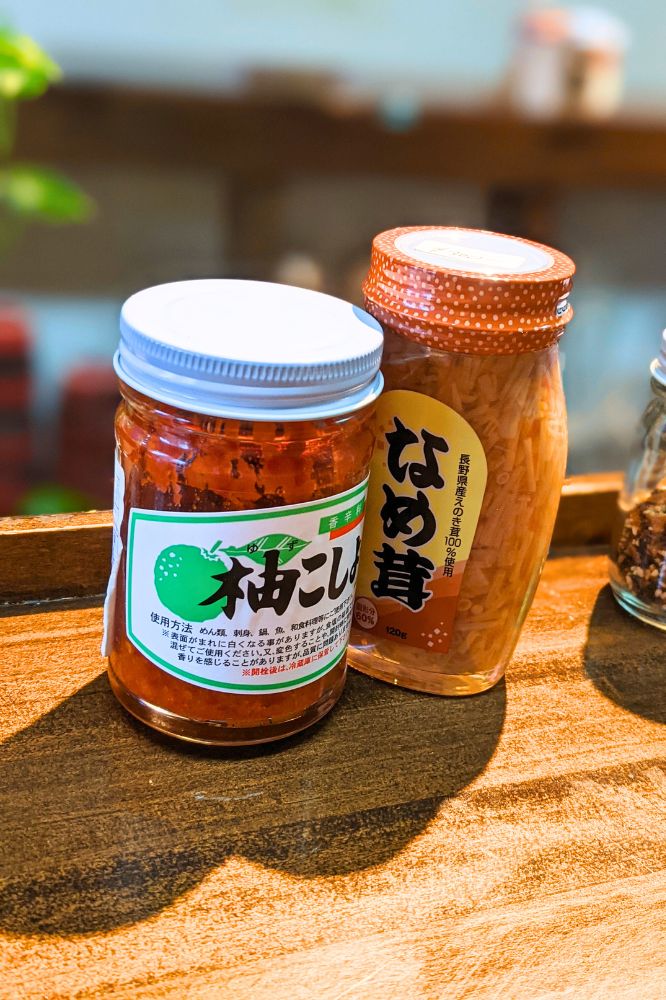 柚子こしょうは分かるとして、なめ茸はどう使うんだ?うどんにあんまり入れたらうまいのか?でも値札貼ってたので売り物なのか?