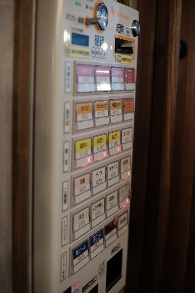 少し並んで呼ばれたので、食券買って入店します。僕は味玉中華そば、妻はノーマルの中華そばにしました。あとは油そばもありました。