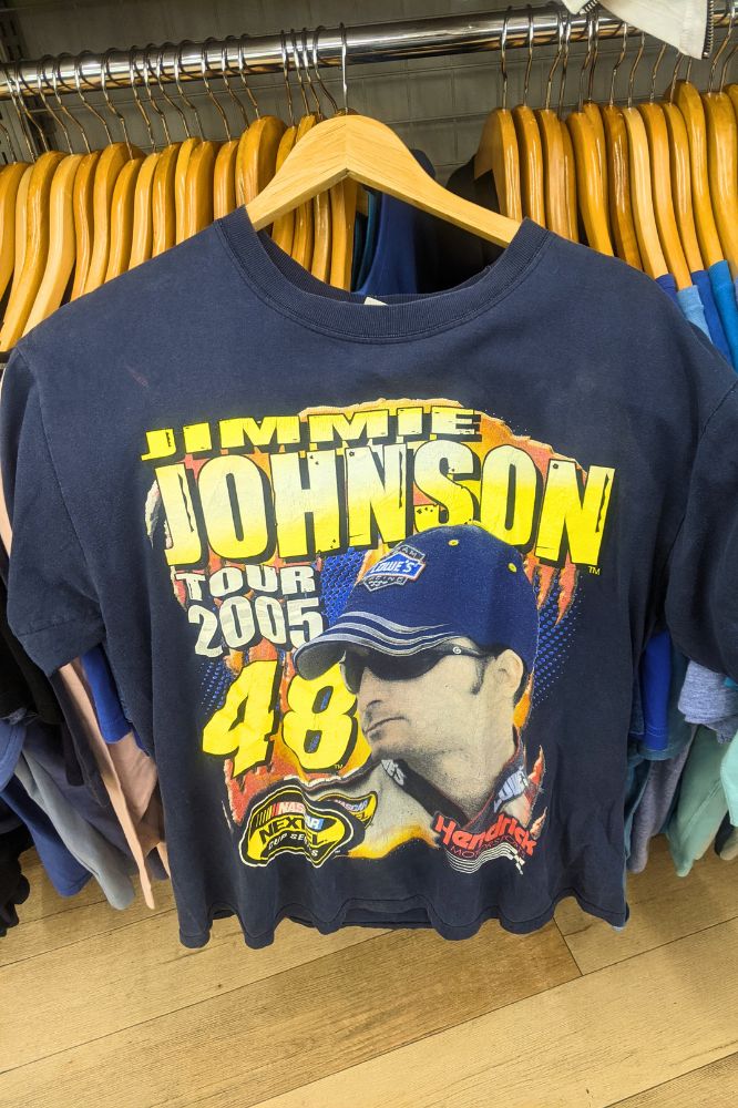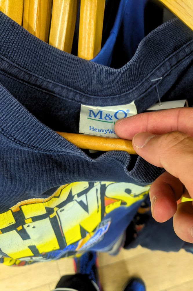 ネイビーのブロックでわりといいの発見!色落ちの感じからちょっと古めのアメリカ製かな?ツアーって書いてるけど、ミュージシャンではなさそう。ただサイズがかなり大きかったのでひとまず見送ります。