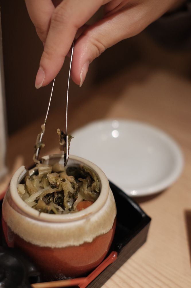 まずいいのがこの漬物。これまじでうまい。漬物の中で1番うまいと思ってるやよい軒の漬物に似た味でこの時点で最高です。多分大根を細く切ったやつかな。