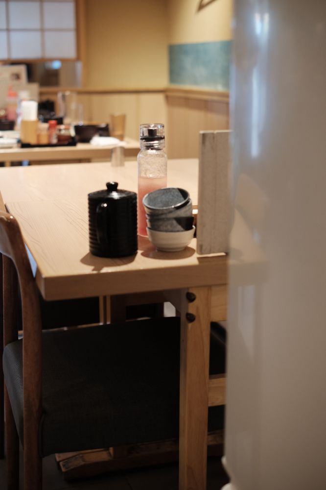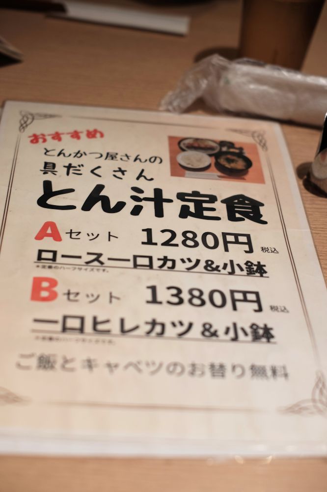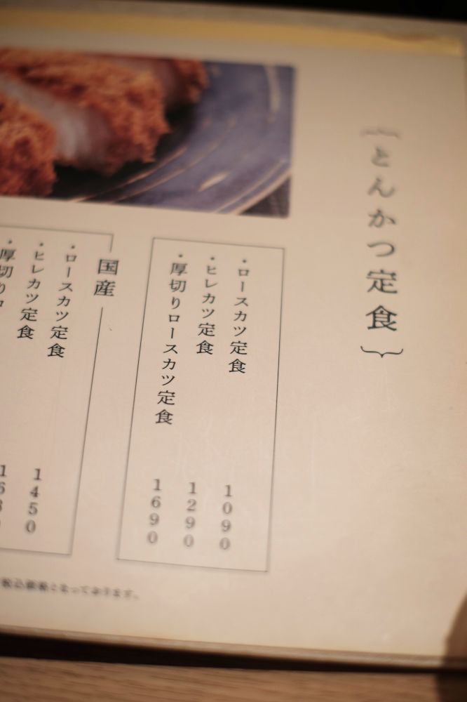 お店の中は落ち着いた感じ。とんかつ屋さんや蕎麦屋さんって年齢層高めで静かなお店多いので落ち着きますね。僕らは二人掛けのテーブルに案内してもらいました。