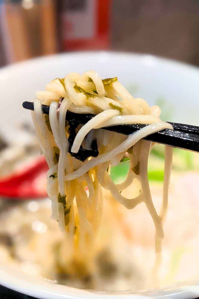 麺は細麺。スープに絡んでほんとおいしい。細麺の方がスープに絡むってなんかに書いてた気がする。どういう理屈かは分からないけど。