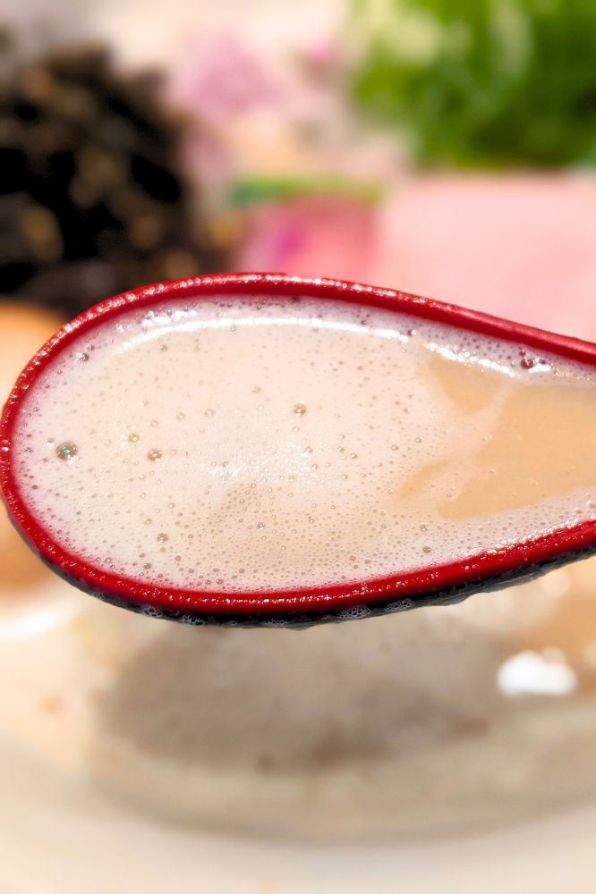 まずはスープから。クリーミーすぎることなく旨味がよく出ててうまい!