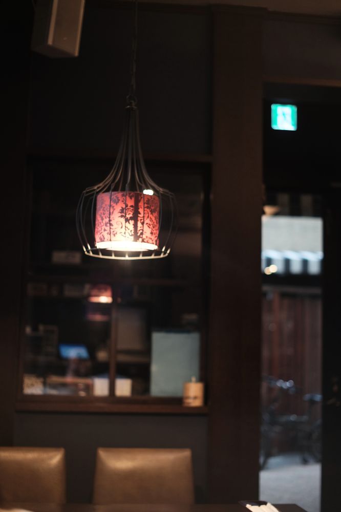 お店の中も天神の真ん中にあるとは思えない落ち着いて雰囲気で、すぐ気に入りました。入って左がカウンター、右がテーブルになってて、僕らはテーブル席に通してもらいました。奥が厨房になってます。
