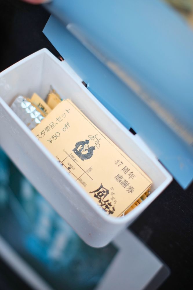 外に入れ物があって、中見るとクーポン券が!手作りの感じが味わい深い。