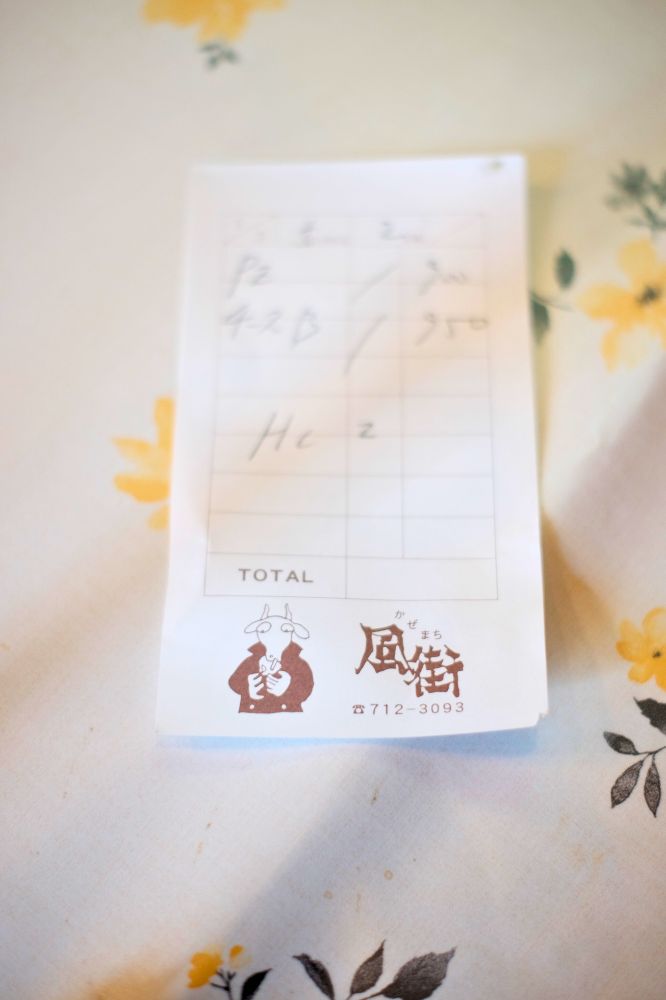 オリジナルキャラクターの伝票。昔からあるお店ってこういう伝票がなにげに可愛いとこ多いよな〜。
