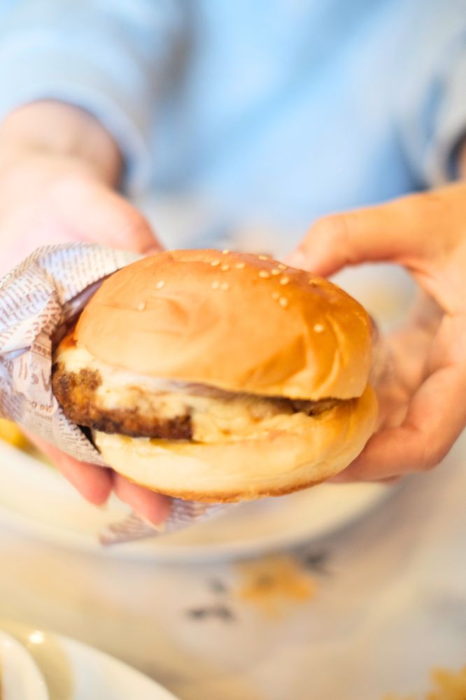 これはうまい!めっちゃ好き。お肉も柔らかめで手作り感がおいしいです。アメリカのハンバーガーじゃなく、日本で発展してきたハンバーガー。子供の頃に遊園地で食べたハンバーガーを思いだしました。チェーンのハンバーガーとかとは全然違うおいしさがあります。