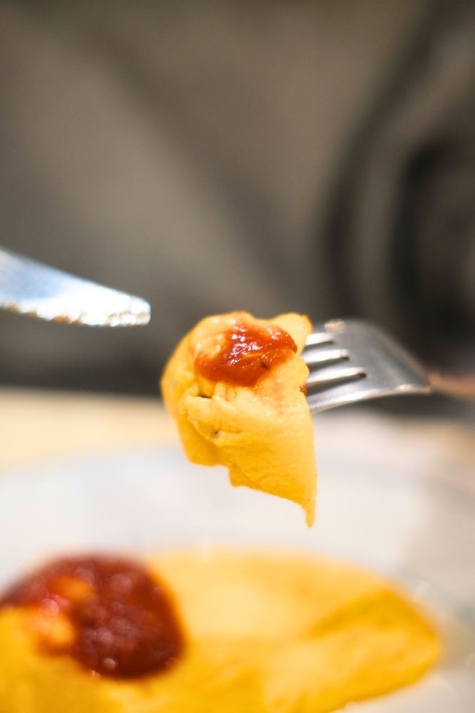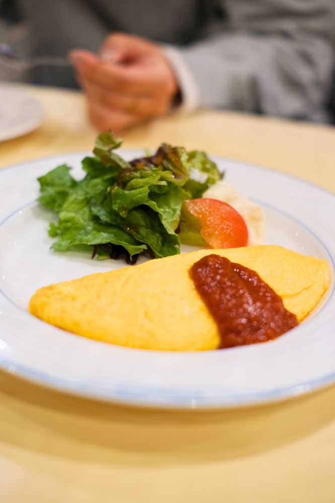 オムレツキレイだなー。見た目完璧ですね。色味的にケチャップではなさそう?と思ったらトマトソースでした。もちろんケチャップもおいしいけど、わざわざトマトソースかけてくれてるなんて得した気分。