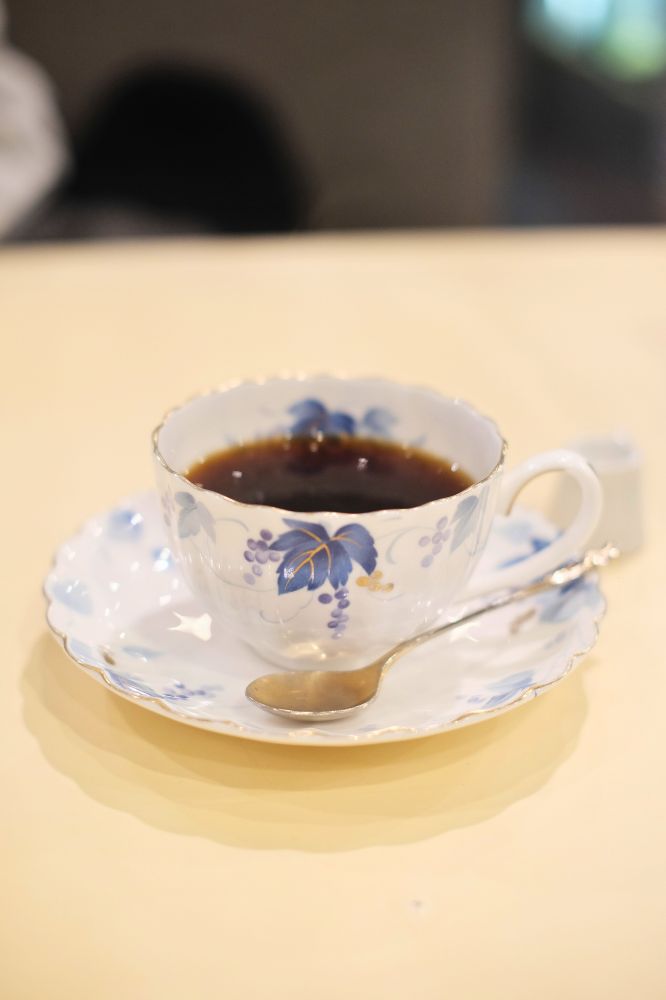 まずはホットコーヒーから。寒かったので落ち着く〜。マダムのカップ&ソーサー。
