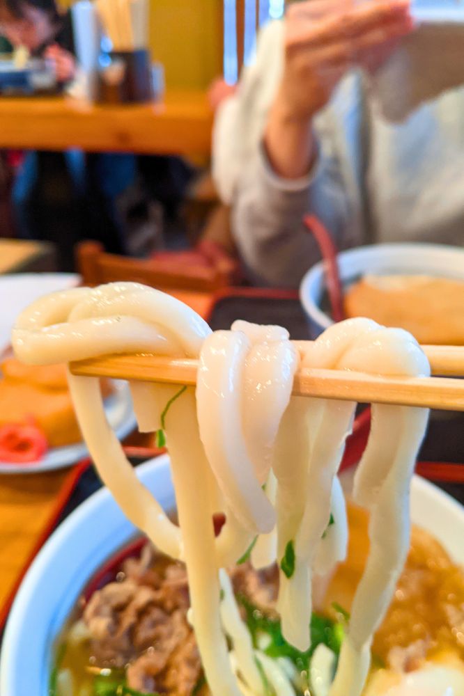 麺は柔らかめだけど、福岡特有のやわうどんほどは柔らかくなく、讃岐とやわの中間くらいだと感じました。いい意味で王道的なうどんで飽きることなく食べれます。