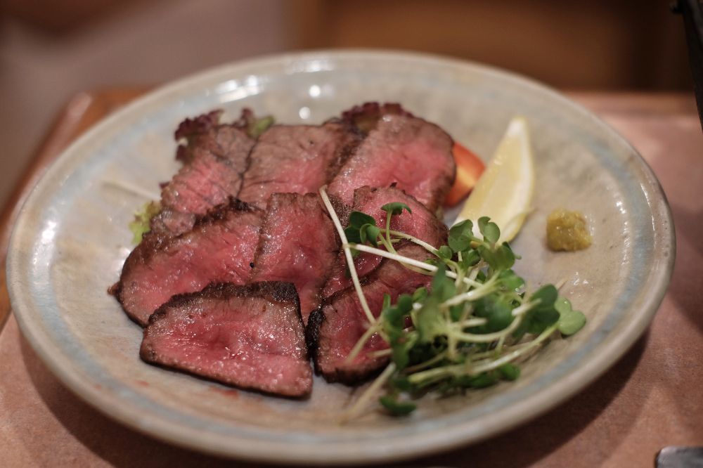 最後はステーキの薄切り。ワサビとポン酢で。わりと脂の乗ってる部位だったので、もう少し前半に注文すればよかったかな?と思いましたが、間違いないおいしさでした。