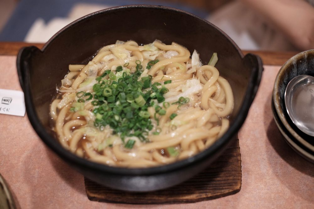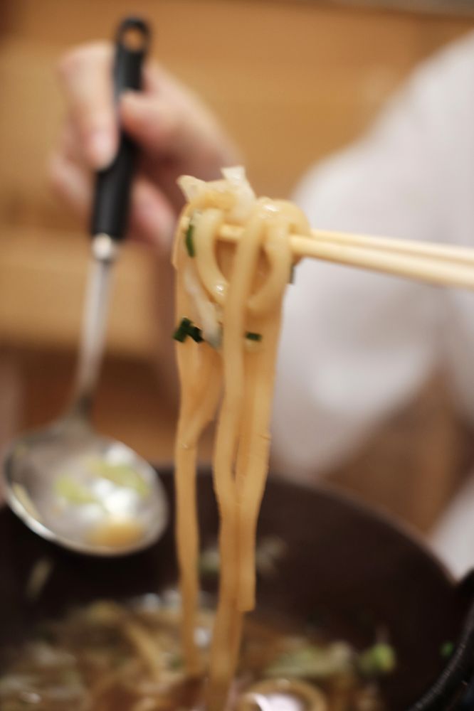 そして、珍しい!と思って注文したホルモンうどん。焼肉屋さんでホルモンうどんって珍しくないですか?アッツアツの鍋焼きうどんスタイルで出てきます。