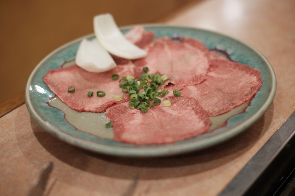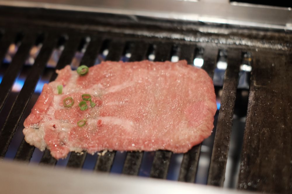 まずは塩タンです。これとは別に「タン(タレ or 塩)というメニューもあったんだけど、お店の人に聞くと部位が違うらしい。塩タンと書いてる方がより柔らかい部位とのことでした。