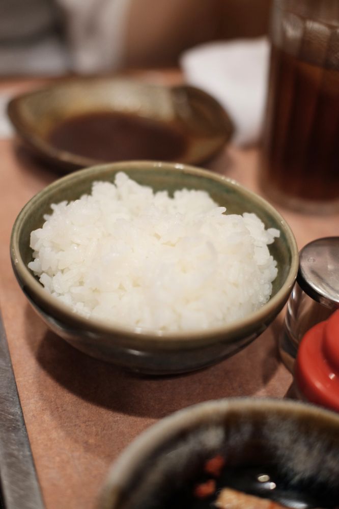 この薄切りがいいですねー。タンは絶対薄い方がうまい、みたいな話を妻とよくします。厚切りをウリにしてるお店もありますが、タンは薄い方が好きなんですよね。そして、付属のサラダと一緒に食べる食べ方がおすすめとのこと。食感と塩の味付けがとてもおいしい。