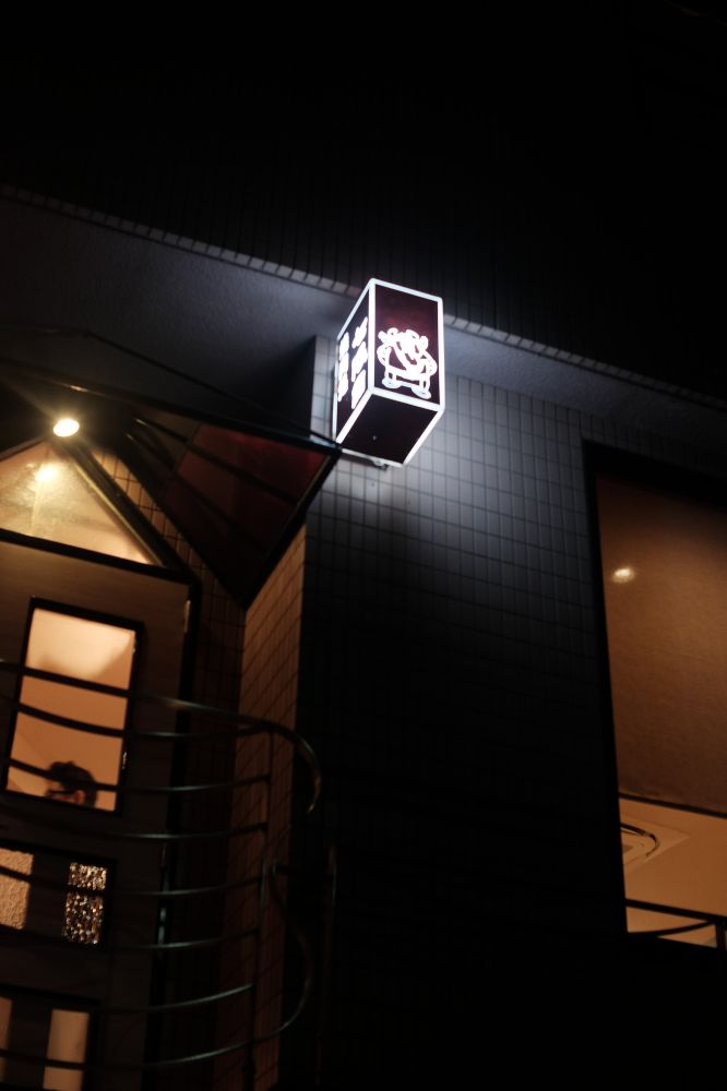 夜なので分かりづらいけど、お店のオリジナルロゴの牛。老舗でオリジナルロゴがあるお店は大体いい店、みたいな自分の中で謎の法則があります。