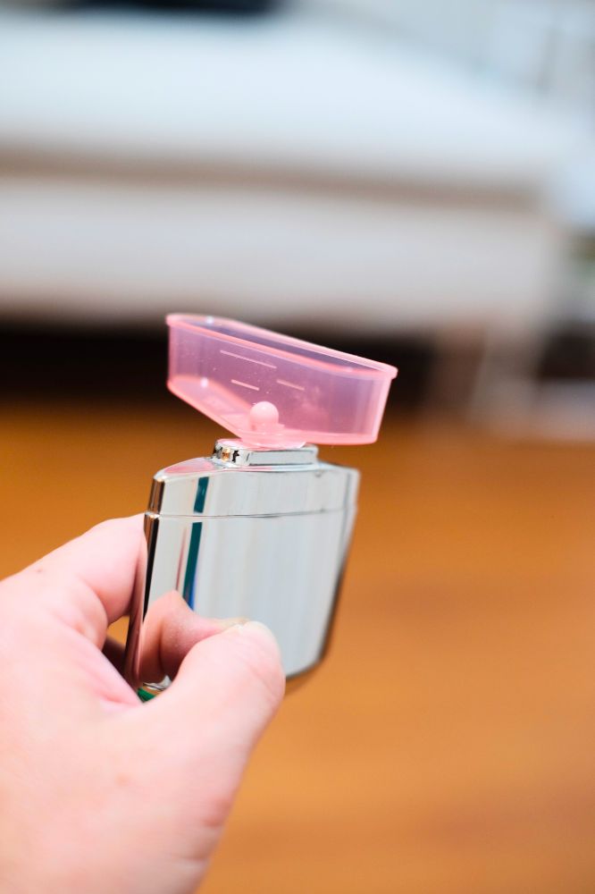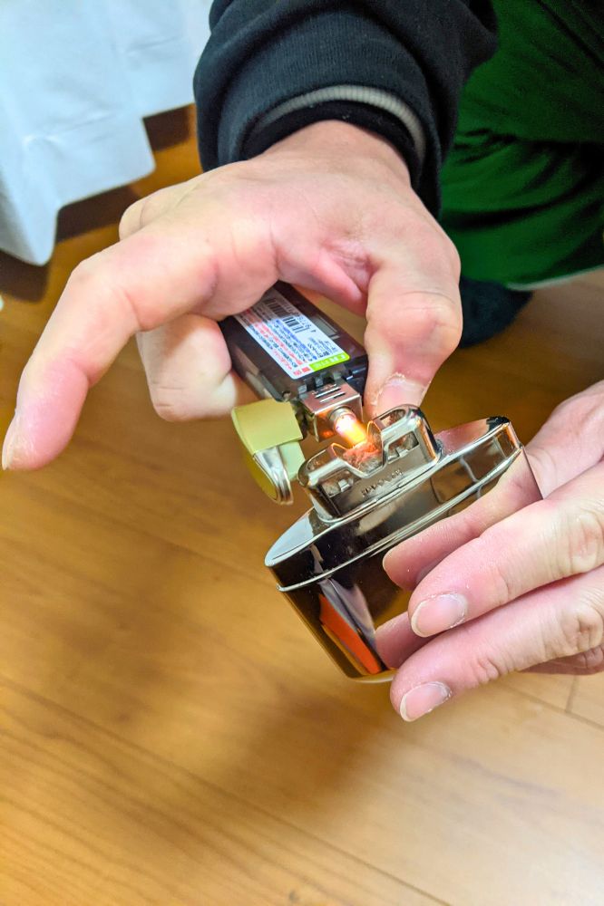 頭の部分を付けてライターで炙ります。5秒くらい。頭の部分が綿みたいになってるので、そこを炙る感じです。