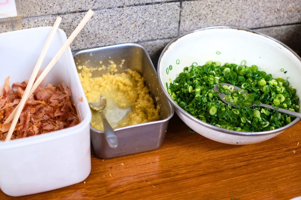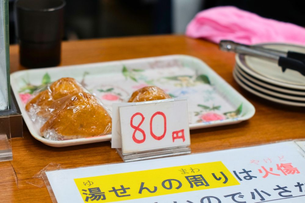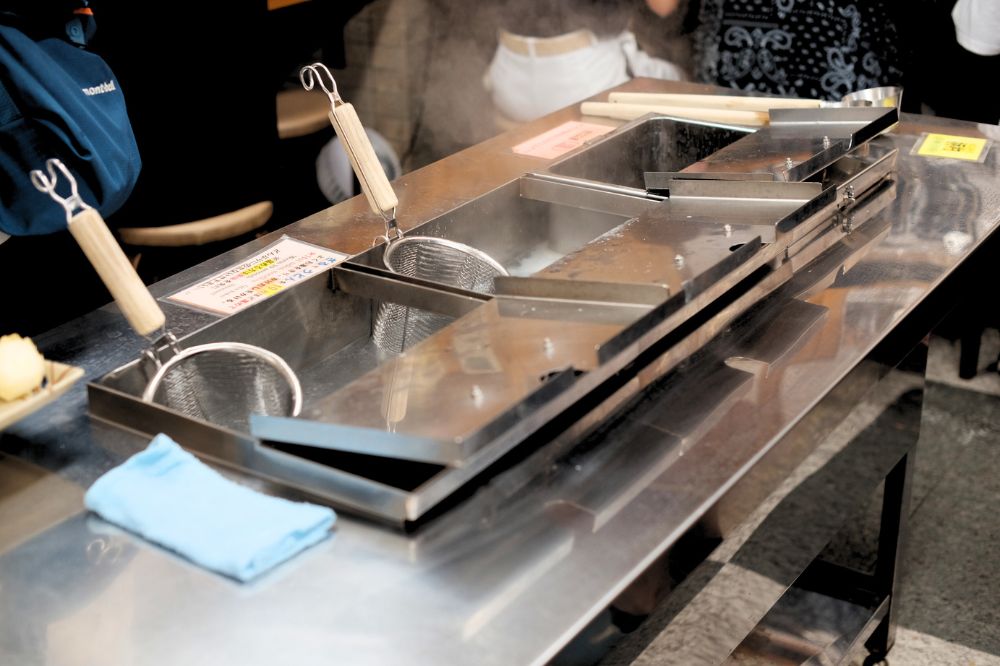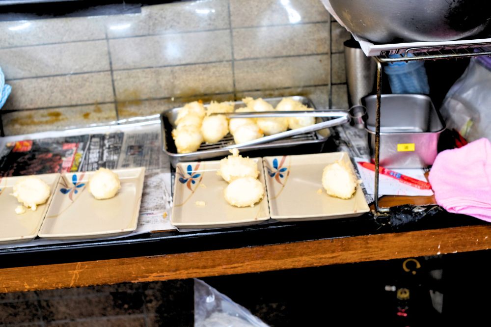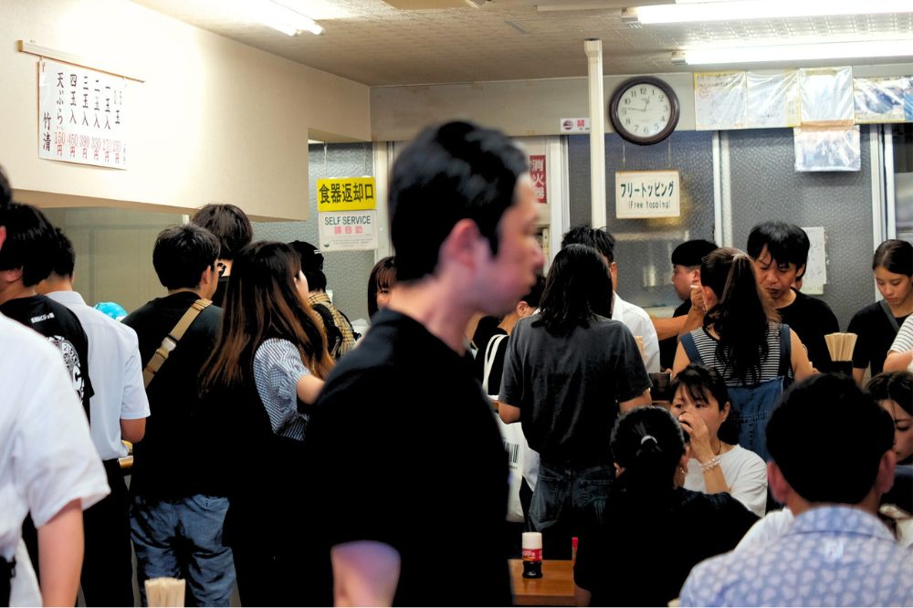 入口付近で天ぷらを揚げてるのが見える。テンションあがります。入店してすぐ、「天ぷら何します?」か聞かれます。ここは必ず頼んでほしい。ちくわ天と半熟卵天の2種類です。