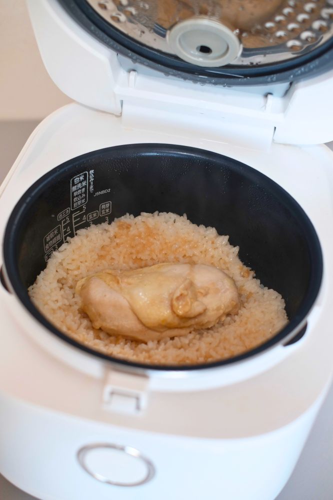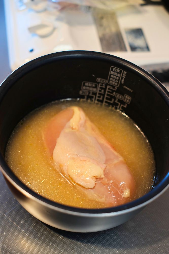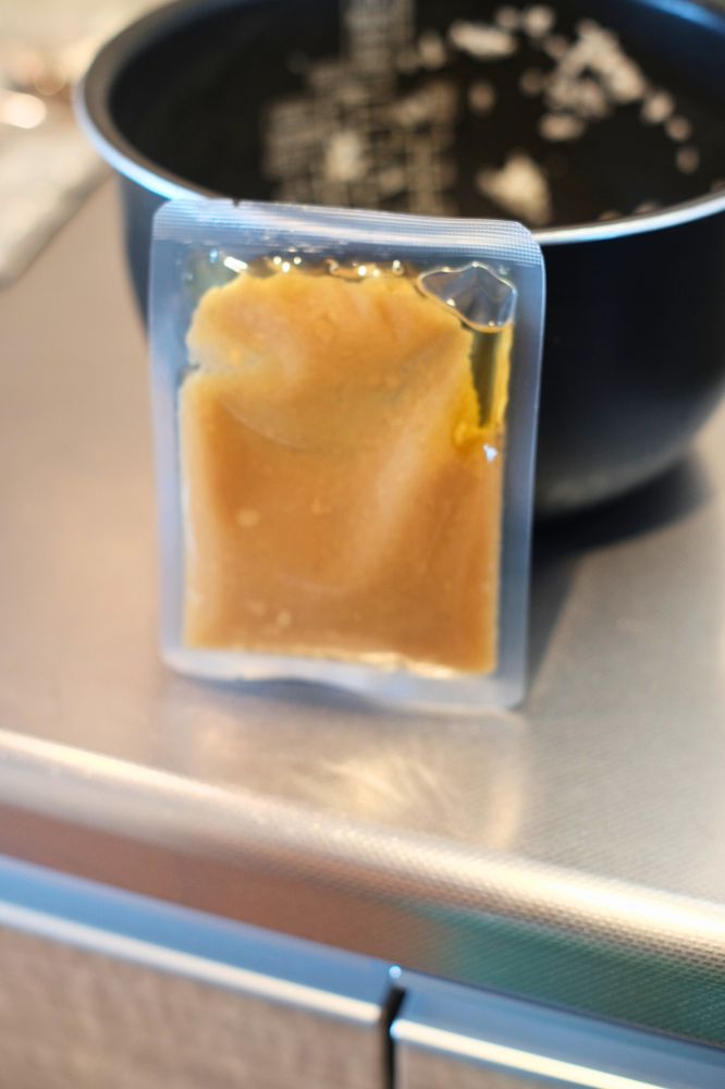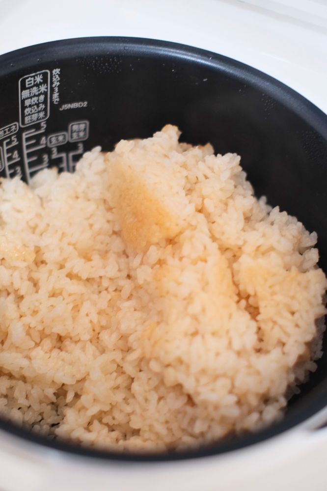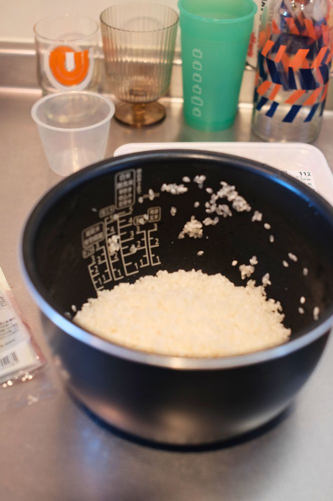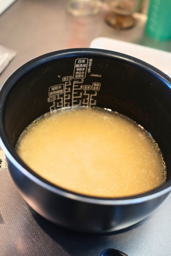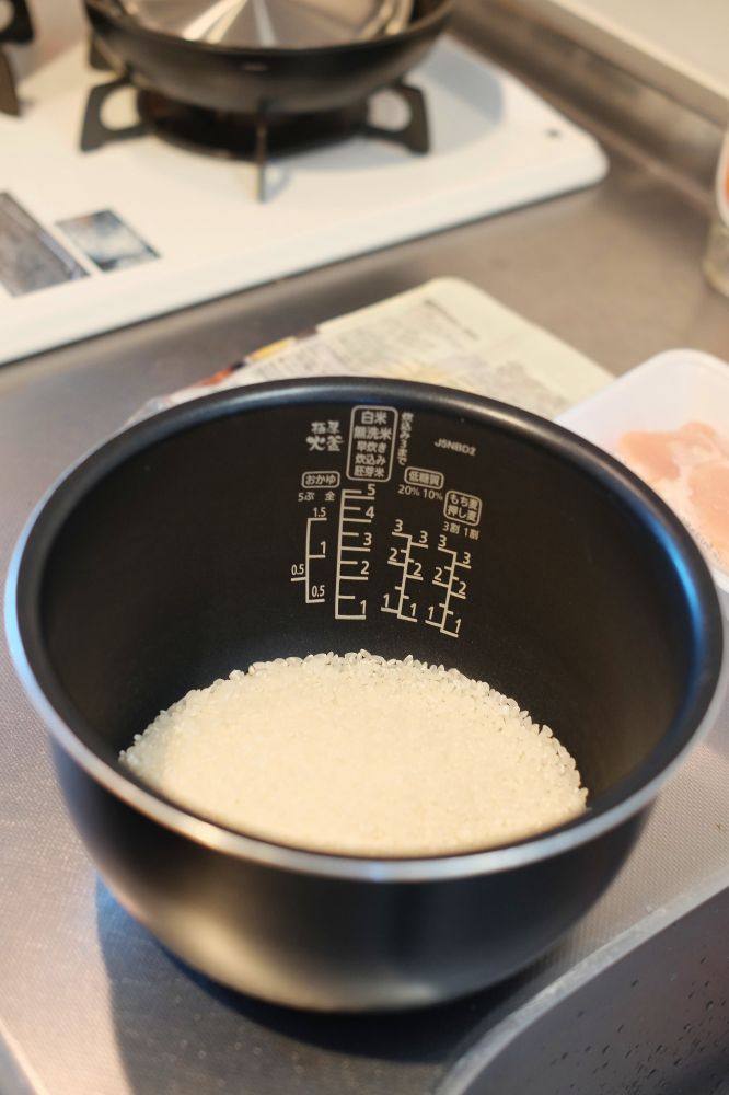 炊飯器にセット。あとは米炊くだけです。ちなみに早炊きはNGとのことなので、そこだけ注意です。