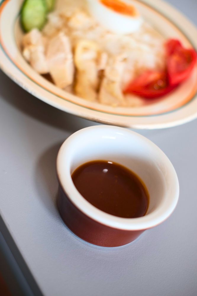 鶏肉につけダレ付けて食べるとまたうまい!昔食べたのはもっと酸っぱい味付けだった気がするので、それが南海鶏飯だったのかな?カオマンガイはもう少し濃いめの味付けですね。