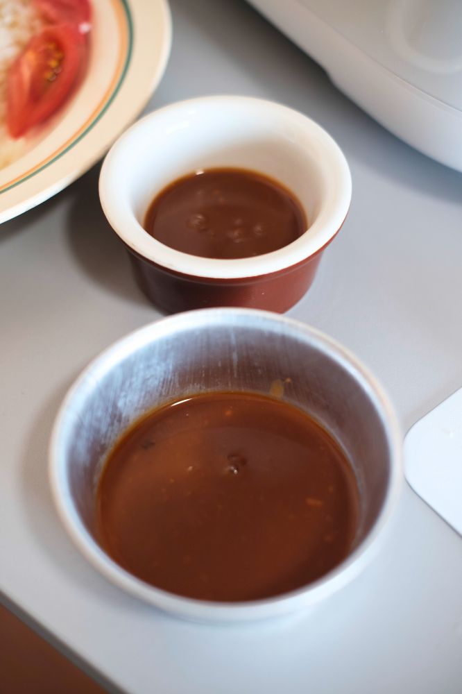 キットのもう一つの袋はつけダレでした。妻がお皿に準備してくれました。