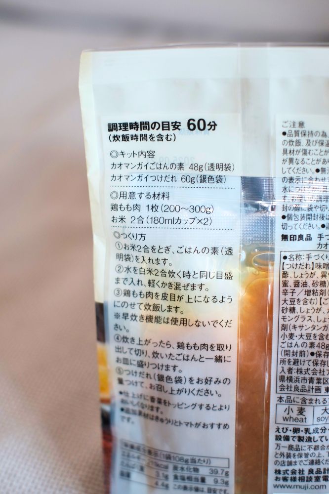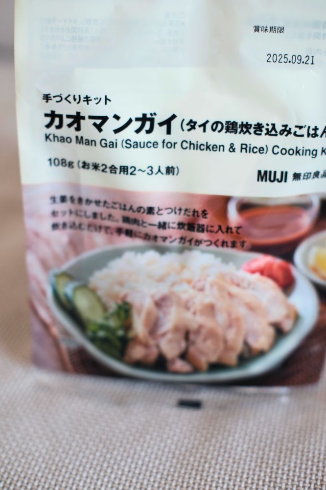 作ると言っても無印のやつで簡単にできそう。少し前大丸の無印に行ったとき、自分で作るシリーズのカオマンガイを試しに買っていて、タイミングで作りたいなーと思ってたんです。