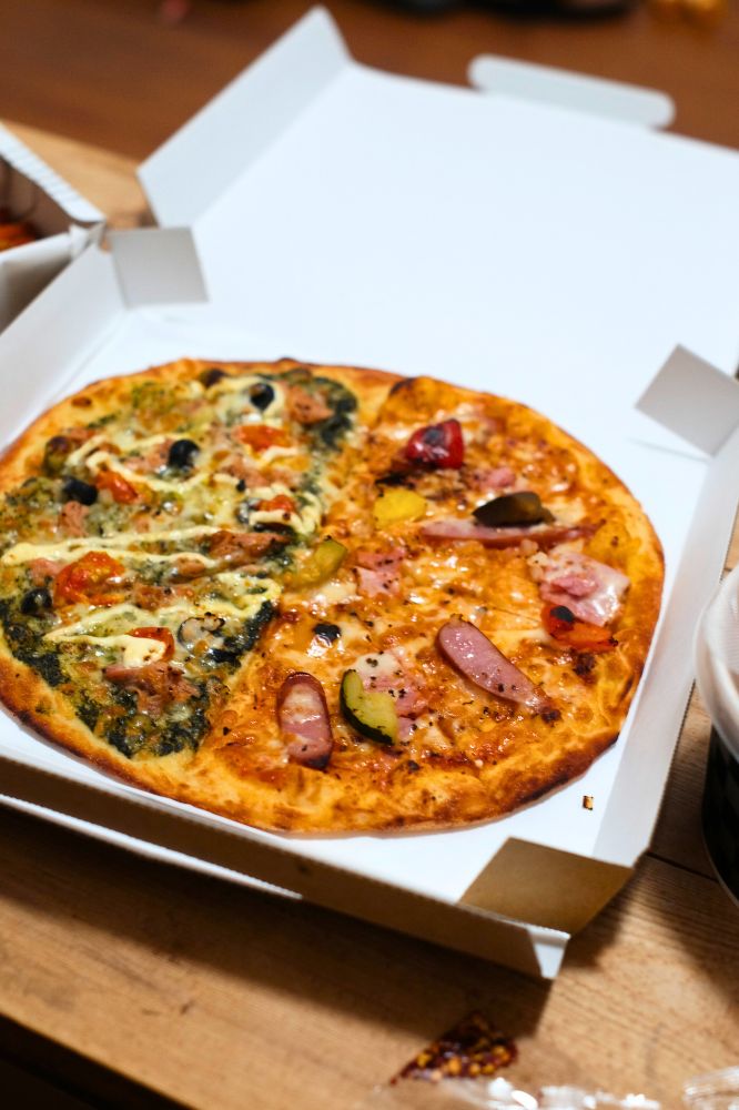 いつもはペパロニを選ぶことが多いんだけど、今回はミラノスペシャルとツナマヨバジルをチョイス。ちょっとチーズが少なかった気がする。でもおいしかった!トマトソース系と別の味のハーフ&ハーフは飽きなくていいですね。