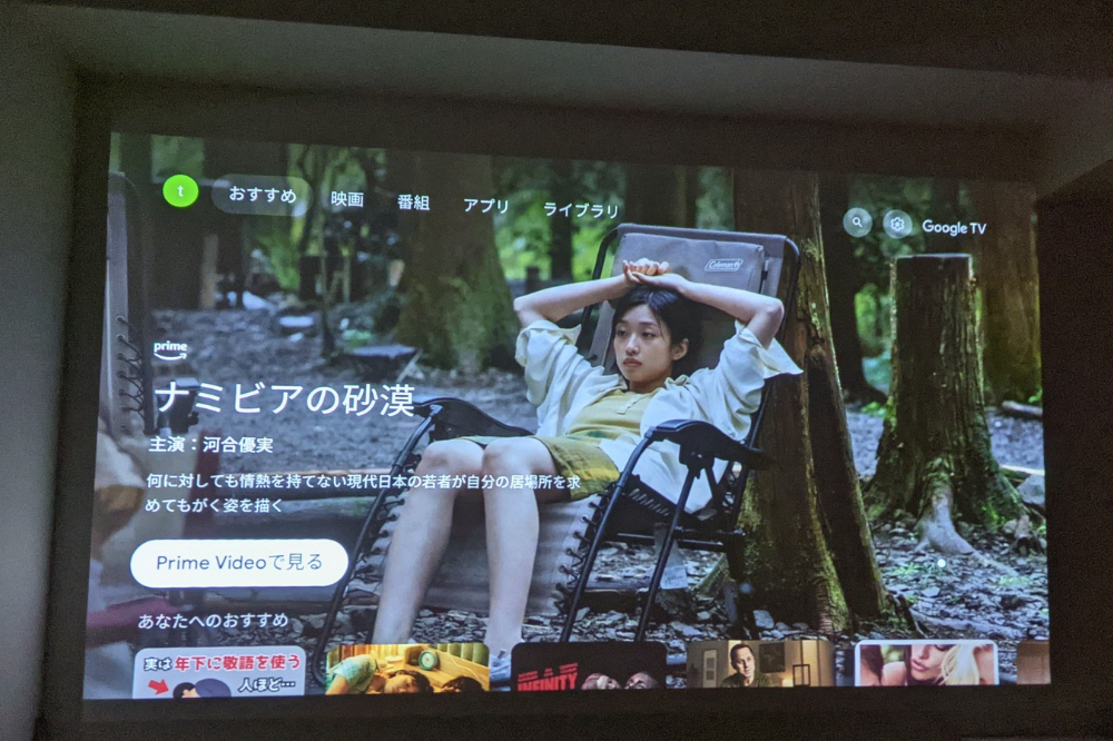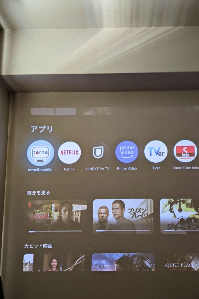 まじでデカい。完全にホームシアターです。昼間はあんまり観なくて、夜に映画やドラマメインで観るのに使うって人は完全にプロジェクターがおすすめ。昼もテレビ観たい、スポーツや自然系の番組が好きな人はテレビがいいかなかと思いました。