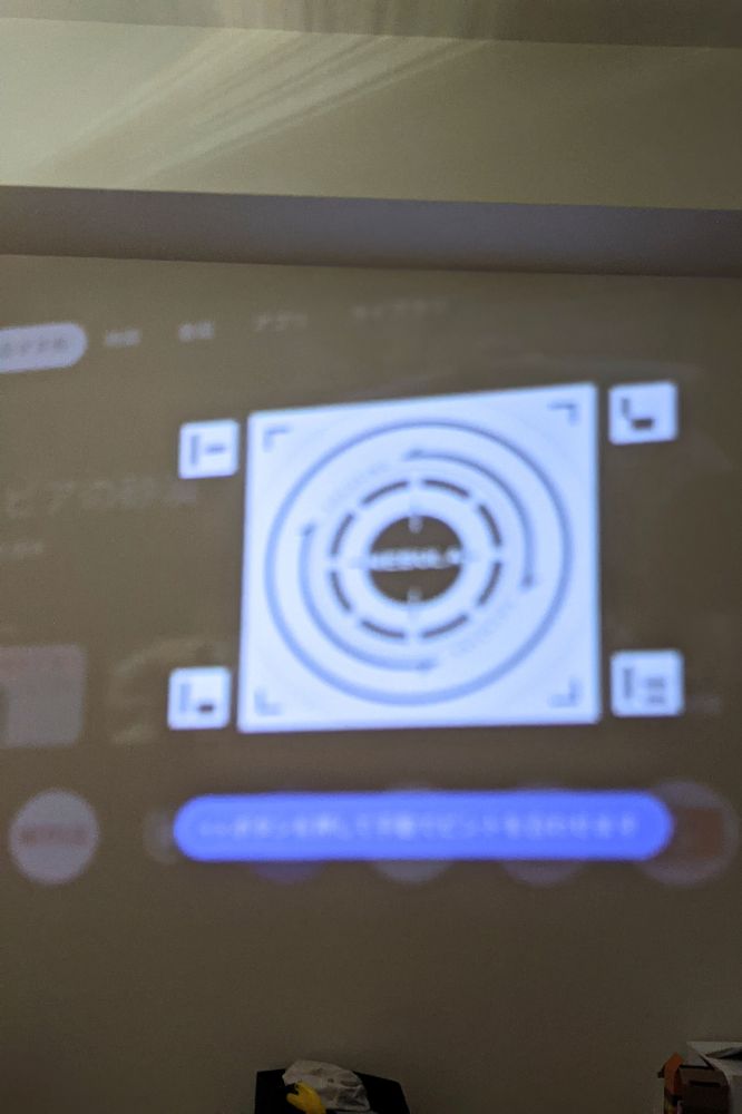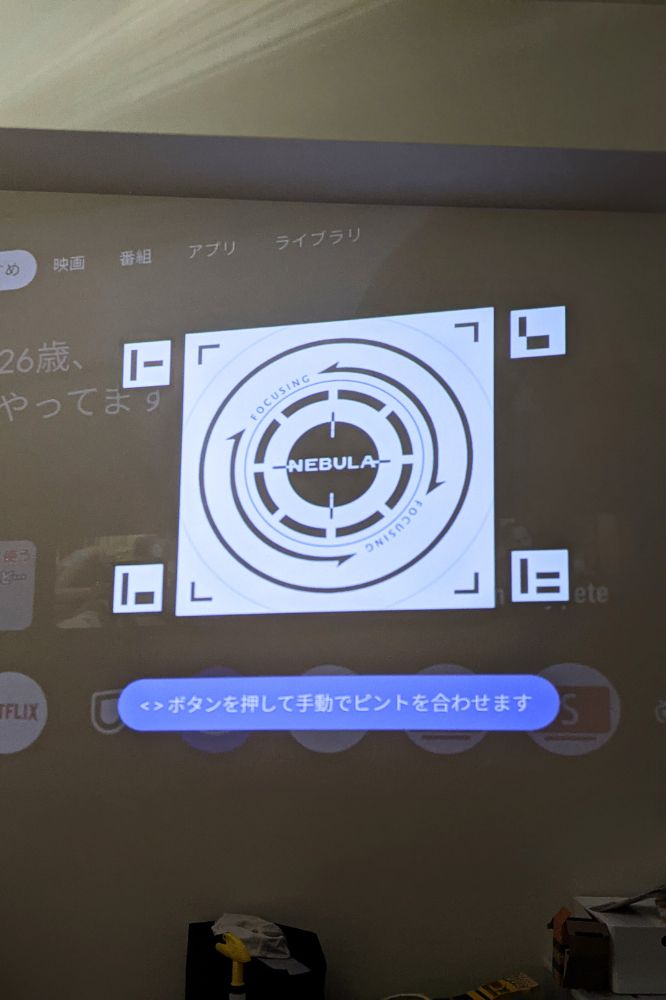 壁に映すと自動でピント合わせてくれます。本体を壁に対して斜めに置く場合でも、手動でちょっと調整してやればちゃんとキレイに映せます。