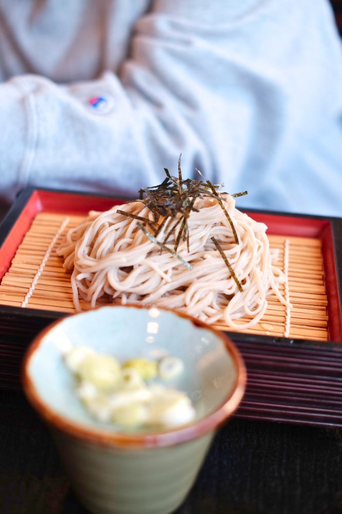 一緒に行った友達はざる蕎麦を注文。こちらは地鶏そばとは違う、ストレートな蕎麦つゆでした。