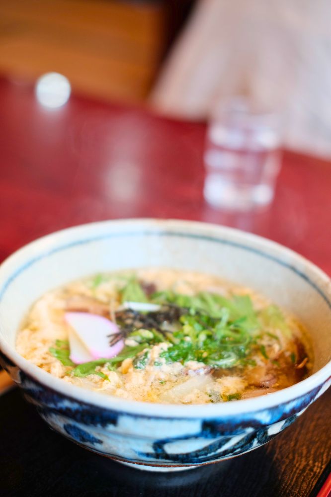 壁におすすめって書いてたので、みつせ地鶏そばを注文。甘めの汁に溶き卵が合っててめちゃめちゃうまい!そばのつゆというよりは、うどんの出汁みたいな味付けに感じました。うどんもやってるので、その関係かもですね。