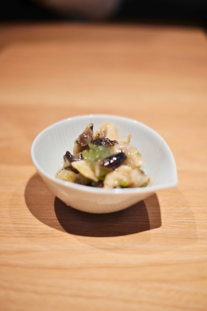 メインの前にかるくつまみ。これはつぶ貝わさびだったかな?