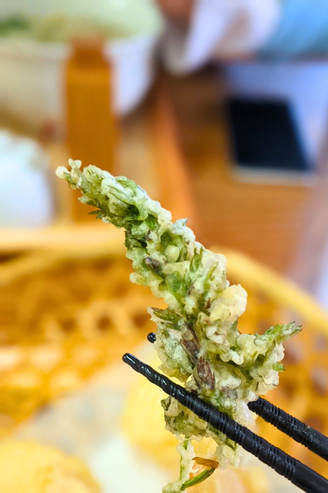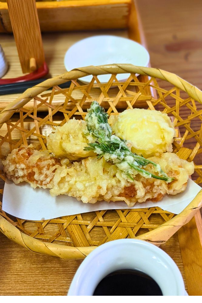 おまけ(?)の山菜天もパリパリしててうまい。